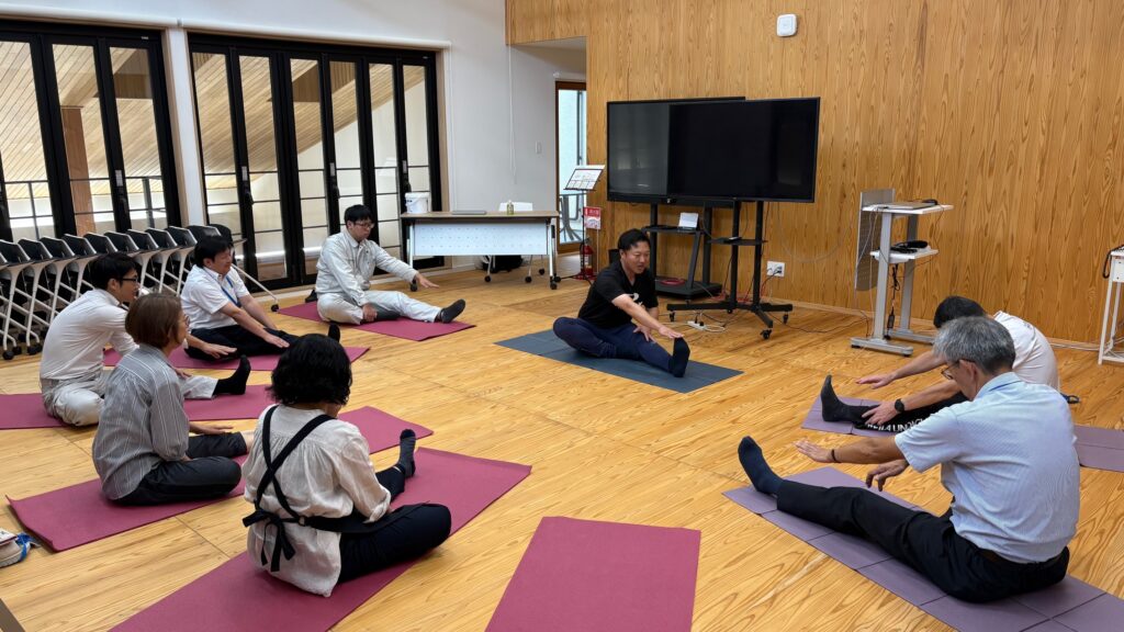 今月も理学療法士の先生を講師としてお招きし、健康増進につながる運動指導を受けました。ストレッチを多めに取り入れ、足首から肩・首にかけて全身くまなく行ってから運動をしました。運動はスクワットや体幹といった基礎的な内容からスプリントスクワットなど動きに変化をつけて実施しました。また、肩痛予防の広背筋ストレッチと肩甲骨の運動は普段あまり動かさない部分だったため難しく感じましたがしっかりと筋肉が伸びて効果を感じることができたため継続して取り組みたいと思います。